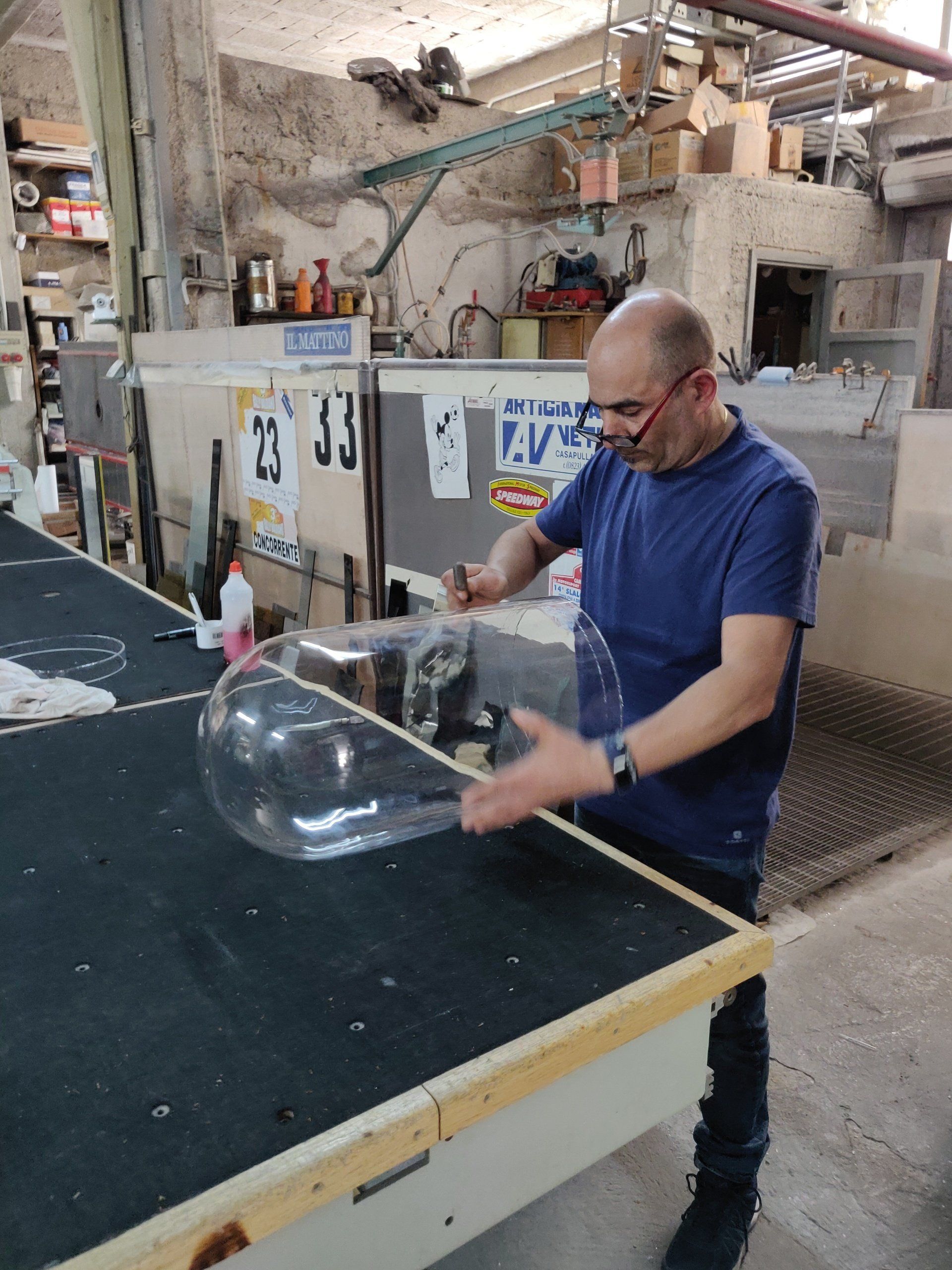 Soltanto seguendo questi semplici canoni si può offrire un servizio ottimale alla clientela. Nella galleria sottostante è raffigurato Raffaele Saullo, intento a tagliare una campana di vetro munito di diamante e martellino.