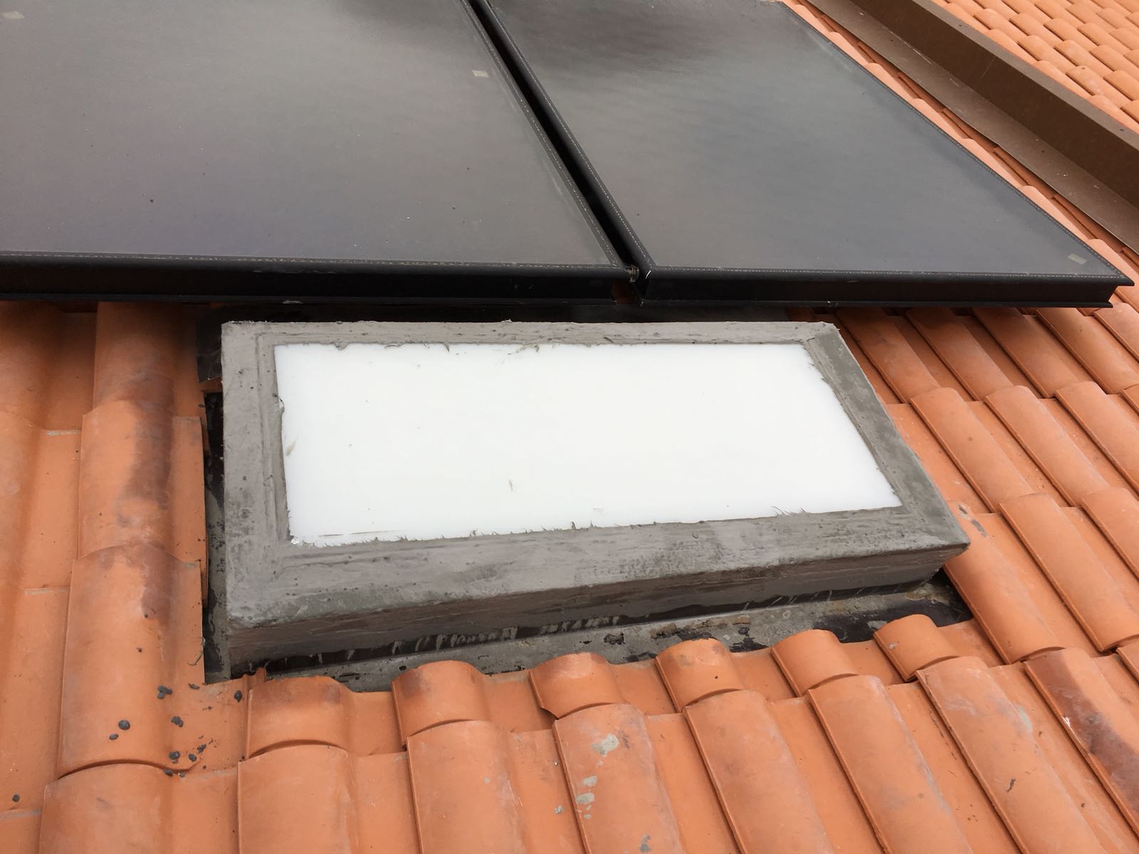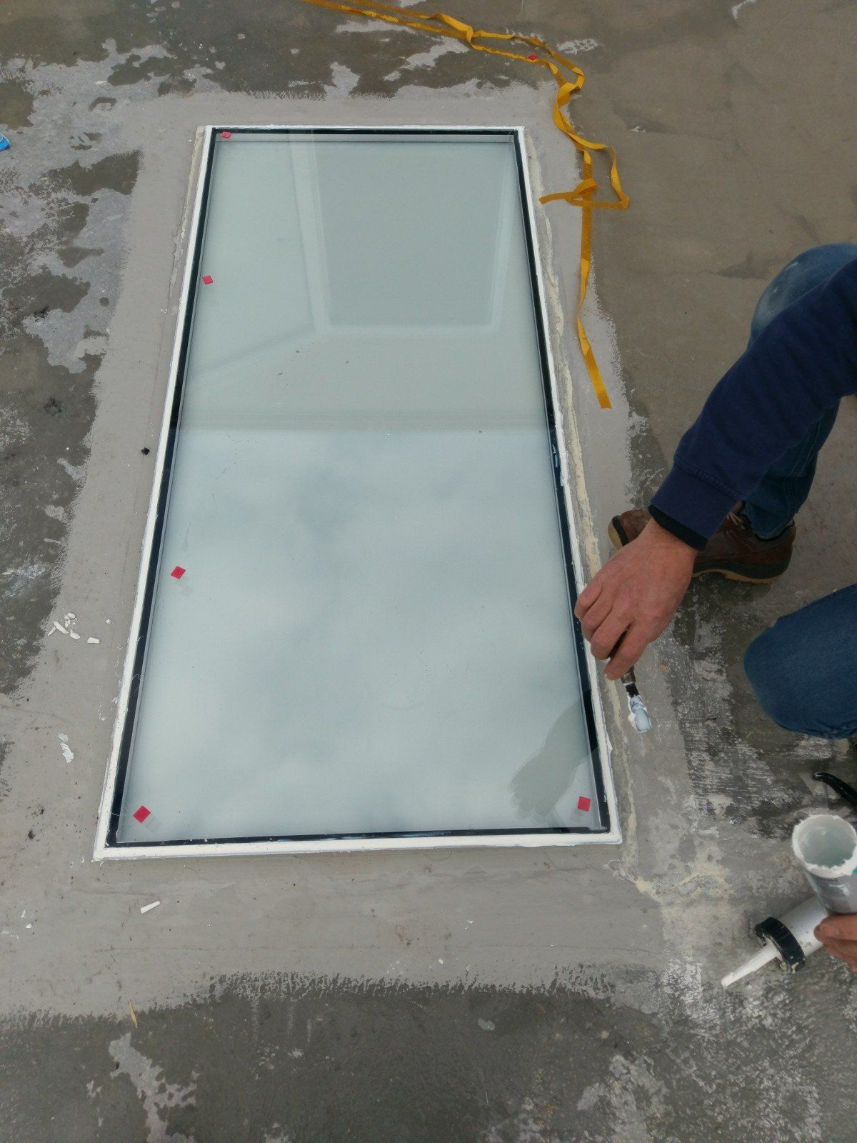 Lucernario con vetri extrachiari, temperati e laminati, con plastico opale. Realizzato con la tecnica del vetrocamera.