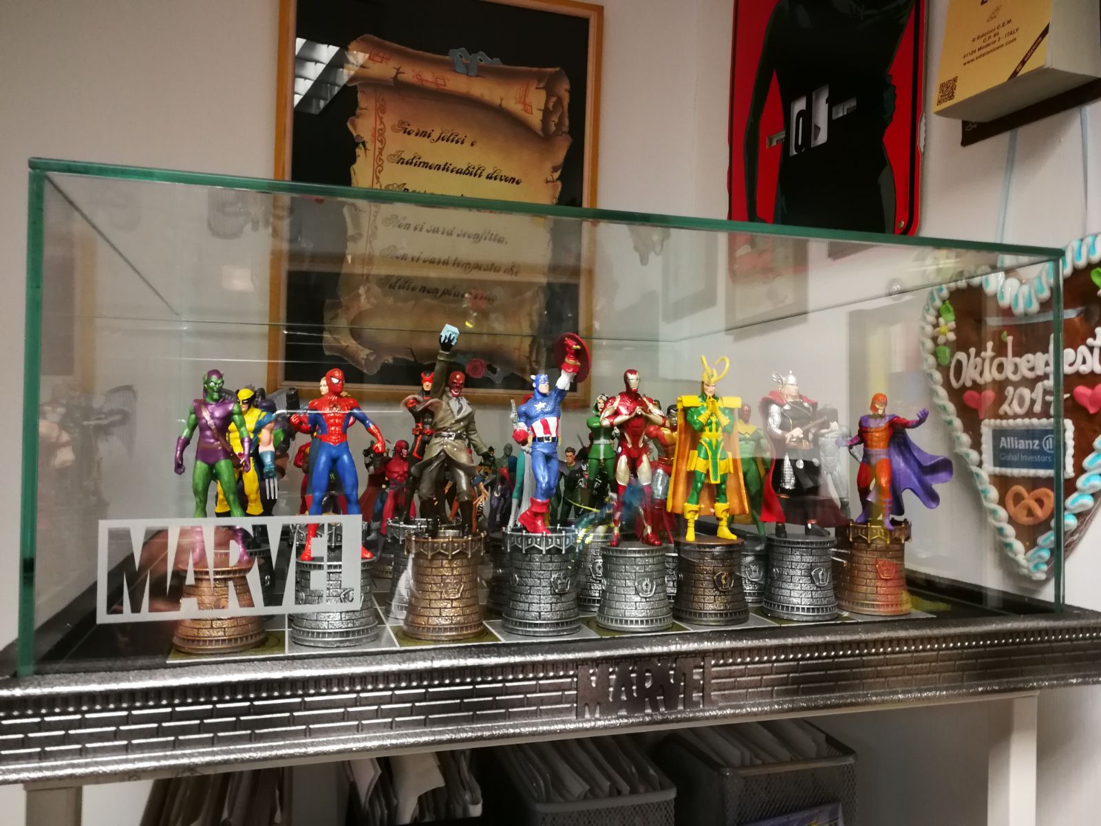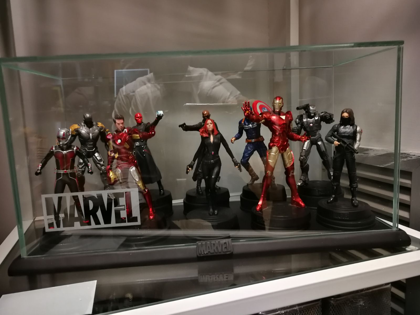 Teca per modellismo in vetro extrachiaro 6 mm con logo Marvel sabbiato.