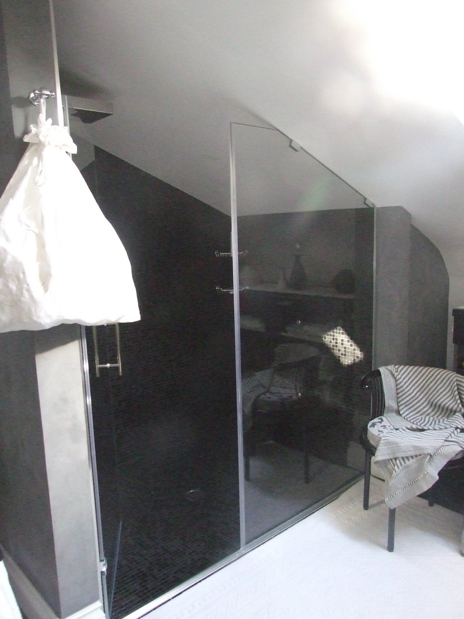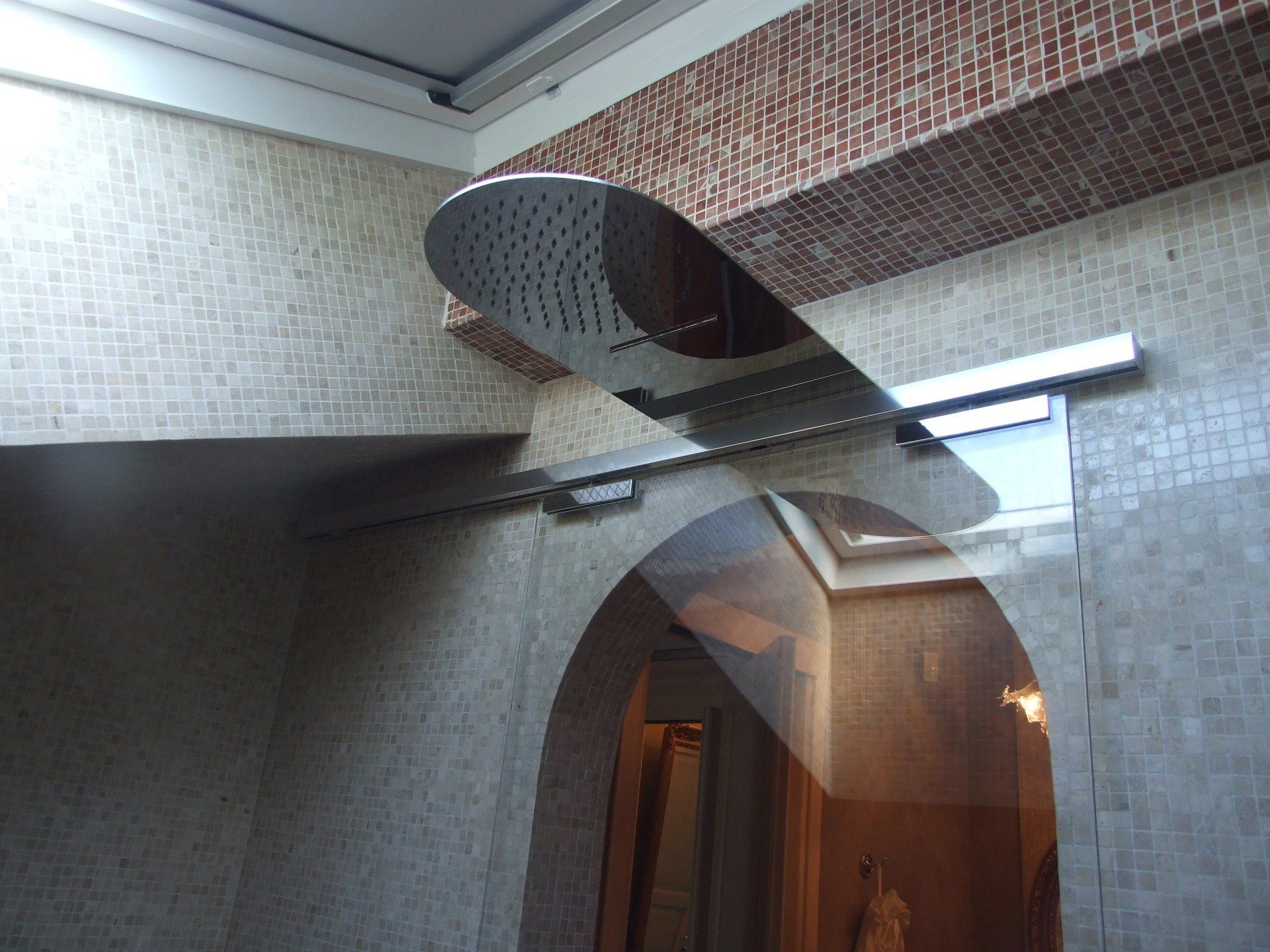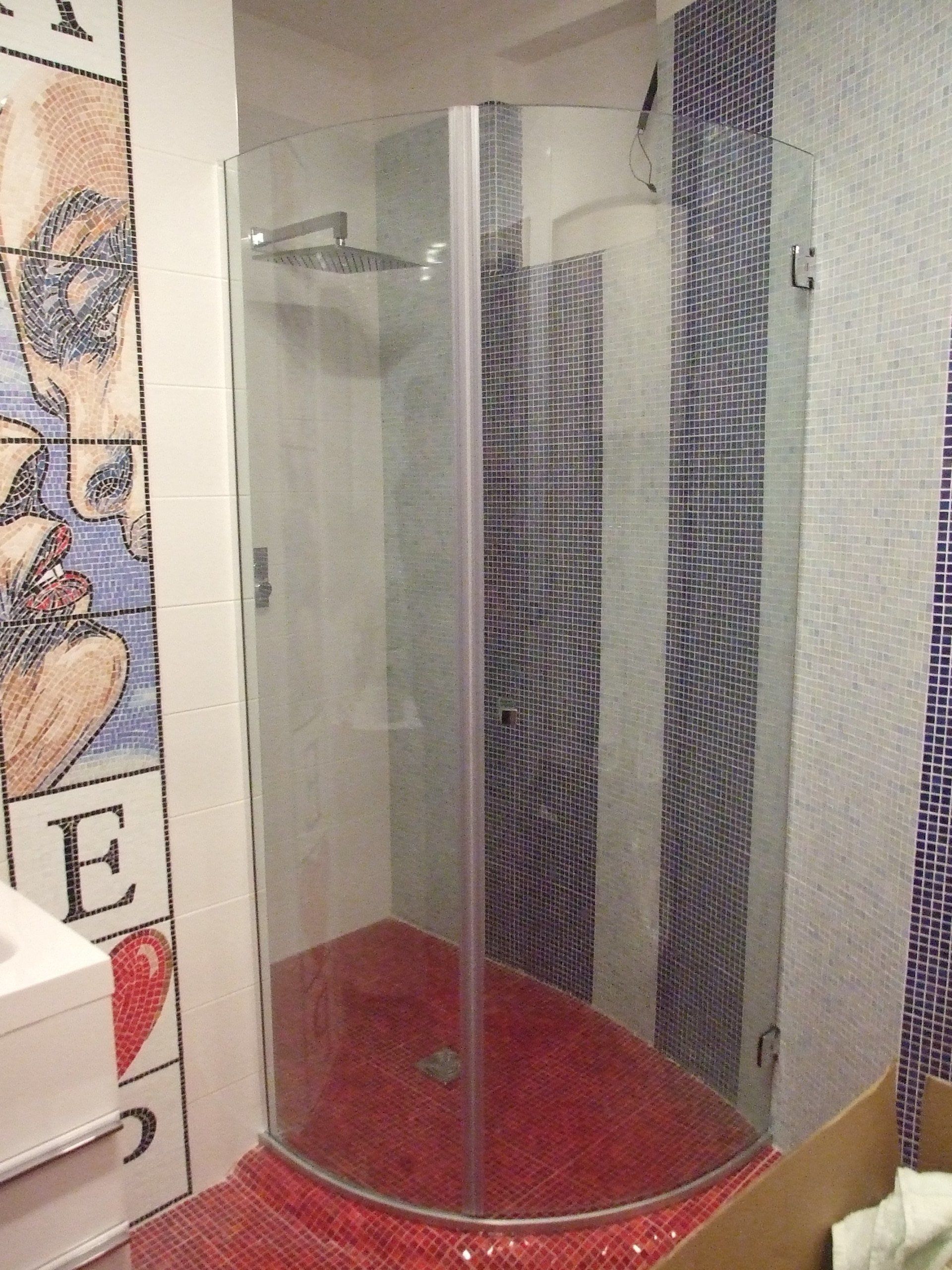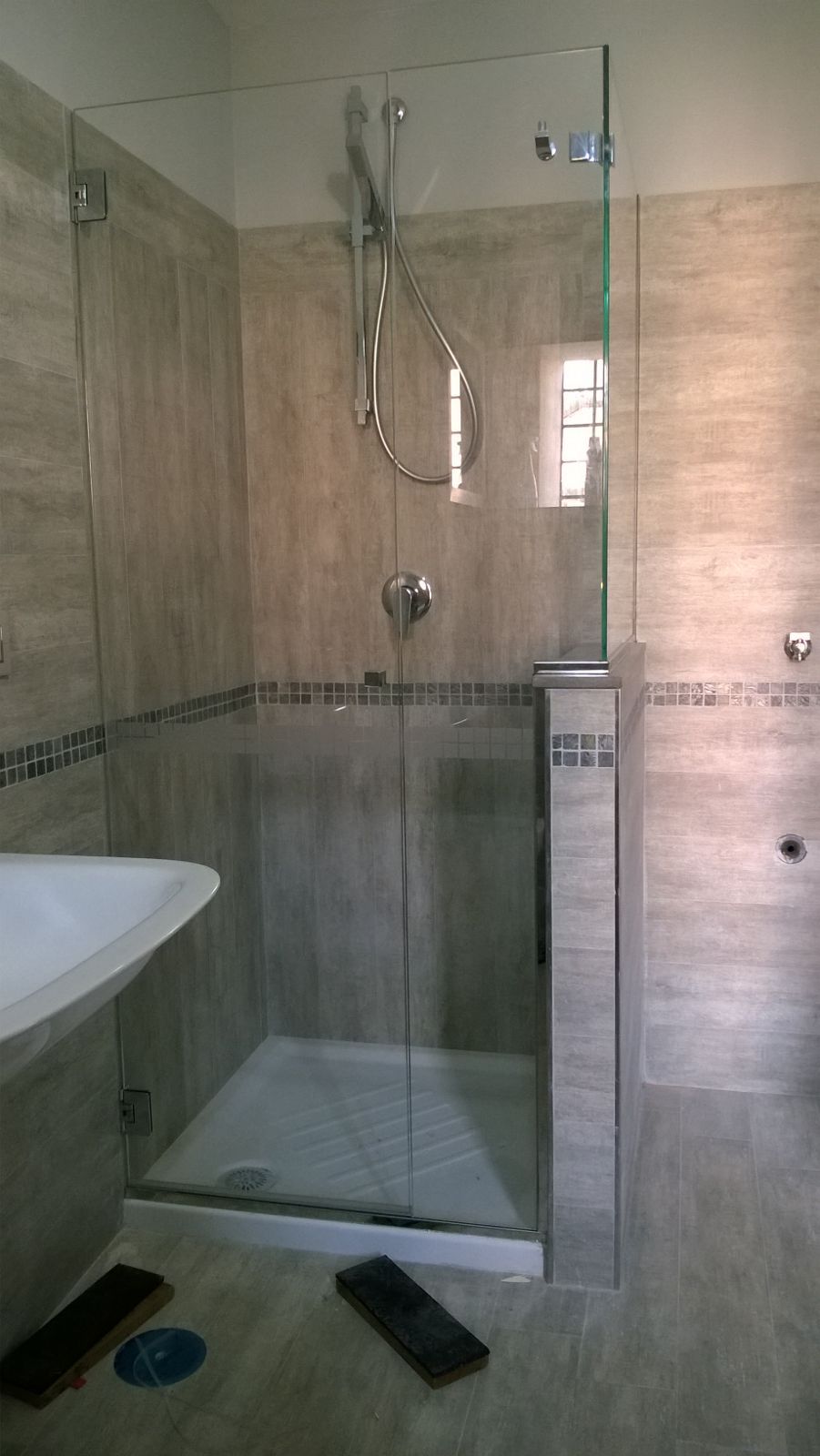 Box doccia personalizzato, con doppio fisso e anta in vetro extrachiaro 8 mm temperato. Cerniere, accessori e profili in acciaio cromo-lucido.