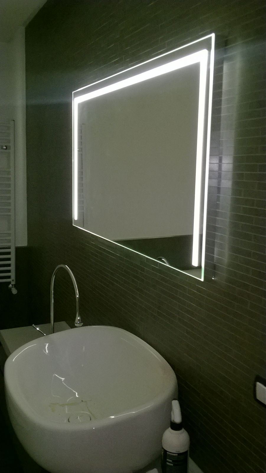 Specchio da 4 mm con fascia sabbiata perimetrale e strip led.