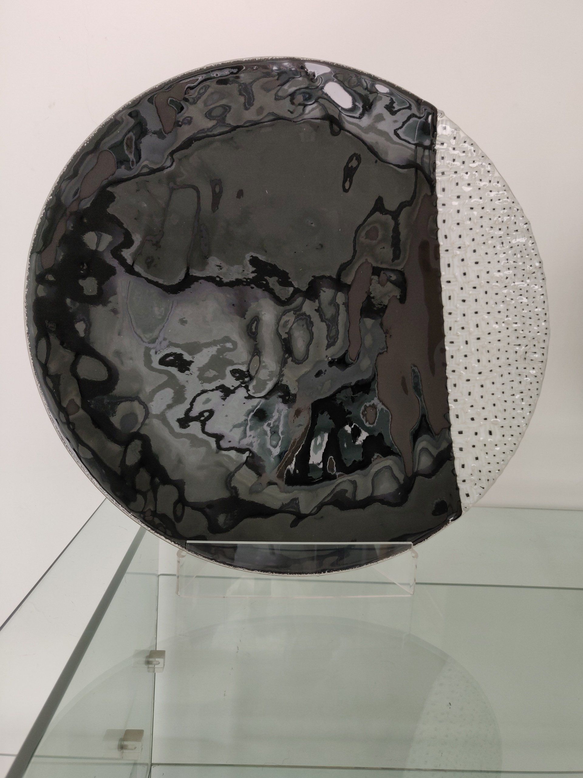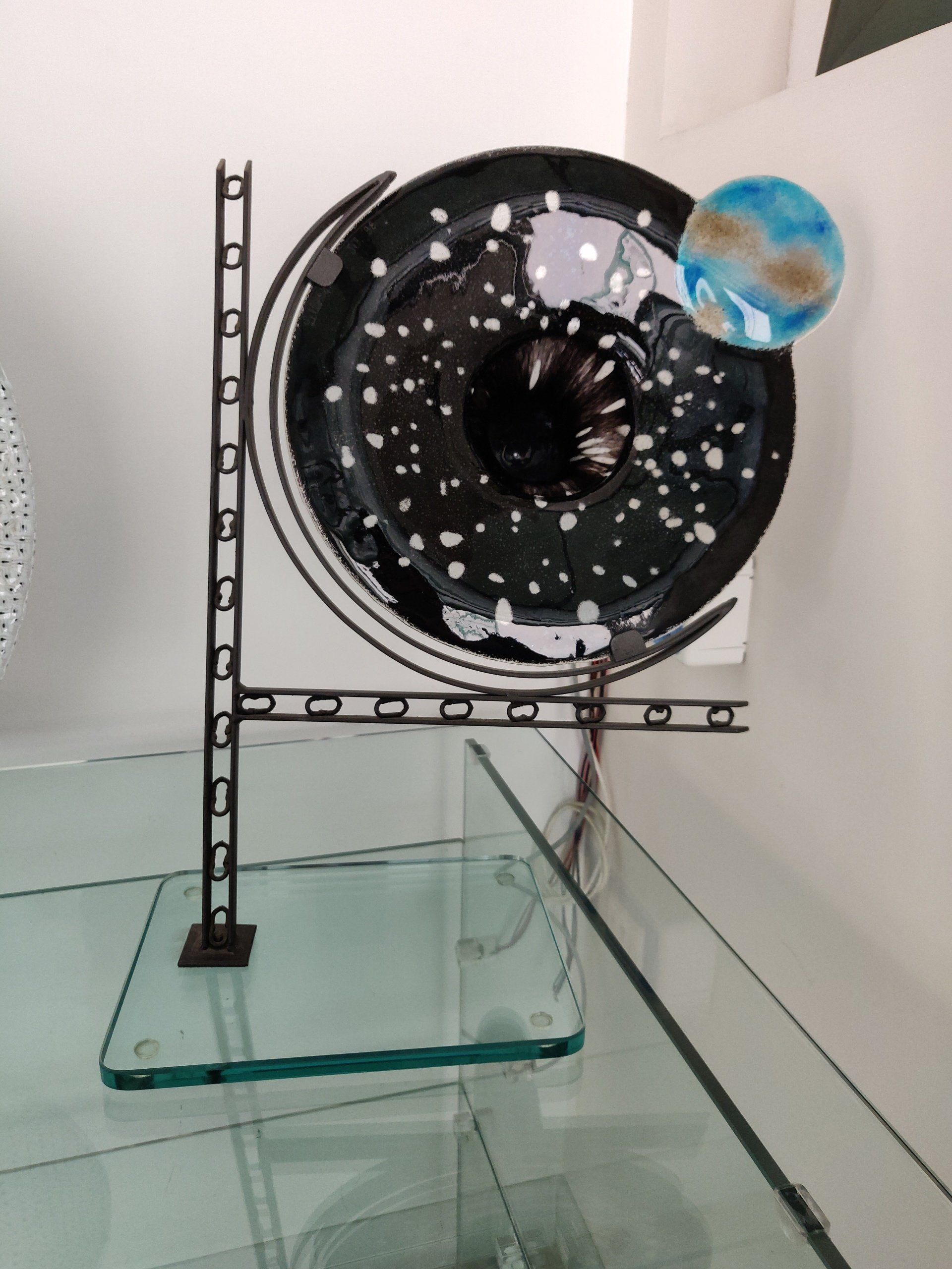 Il "Buco Nero", scultura in vetro fuso da 30 cm di diametro, sagomata con effetto "caduta" ottenendo un cono di 24 cm di diametro.