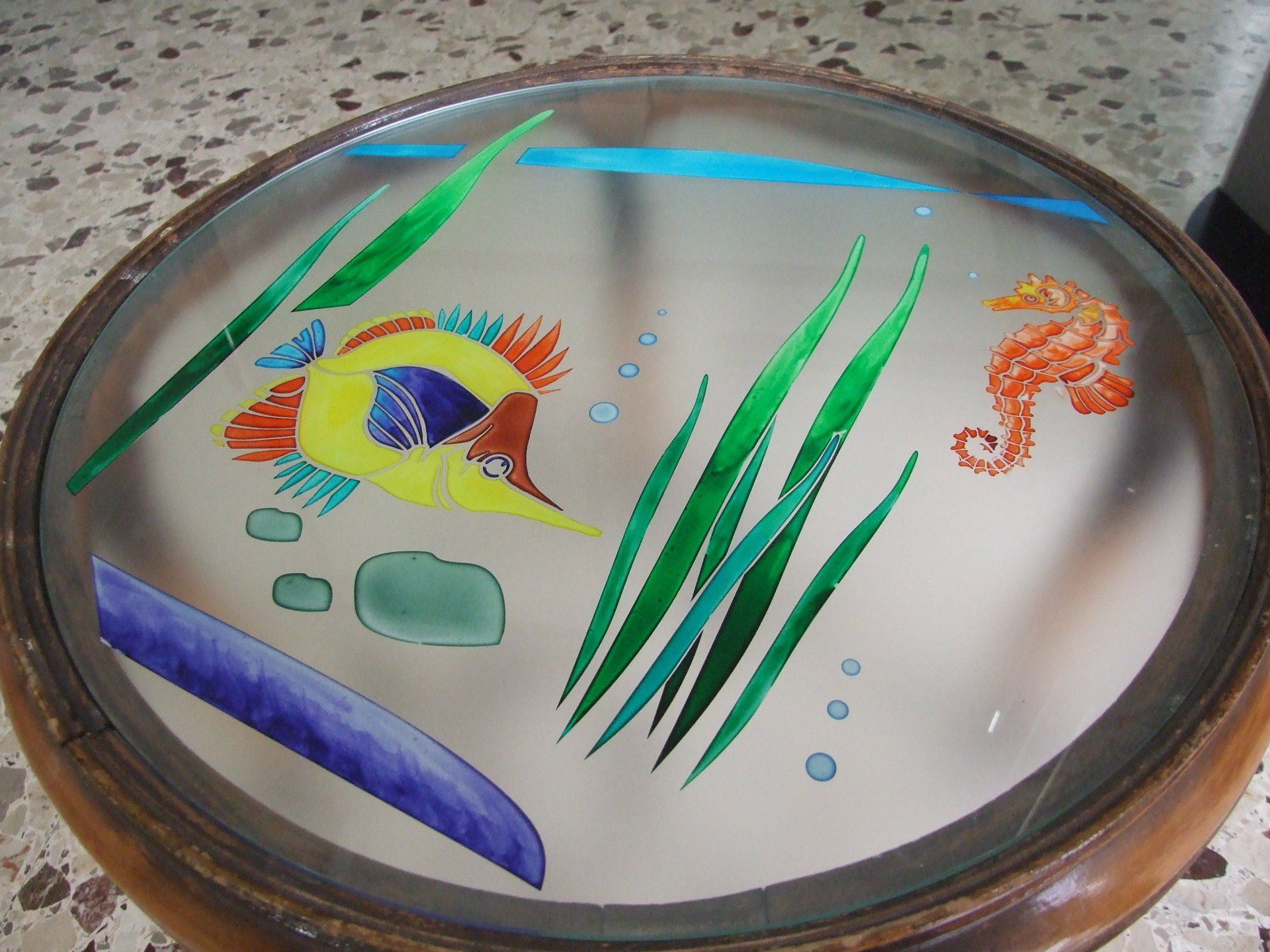 Vetro per tavolino 5 mm satinato e decorato a mano presso il nostro laboratorio.