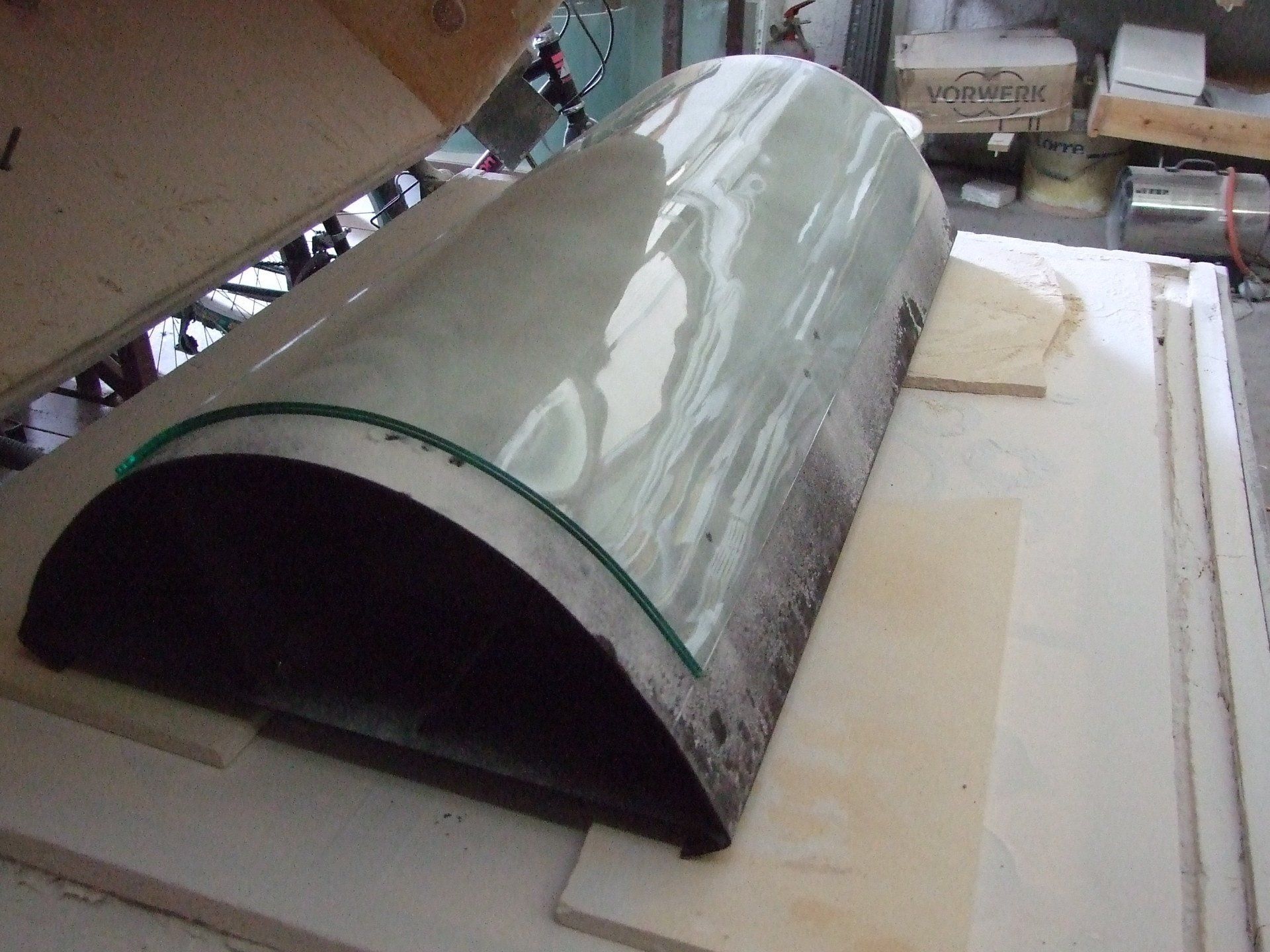 Antina in vetro 6 mm extrachiaro curvata su sagoma in ferro.