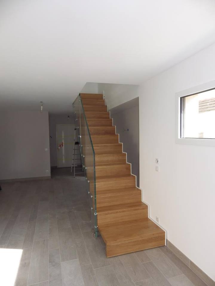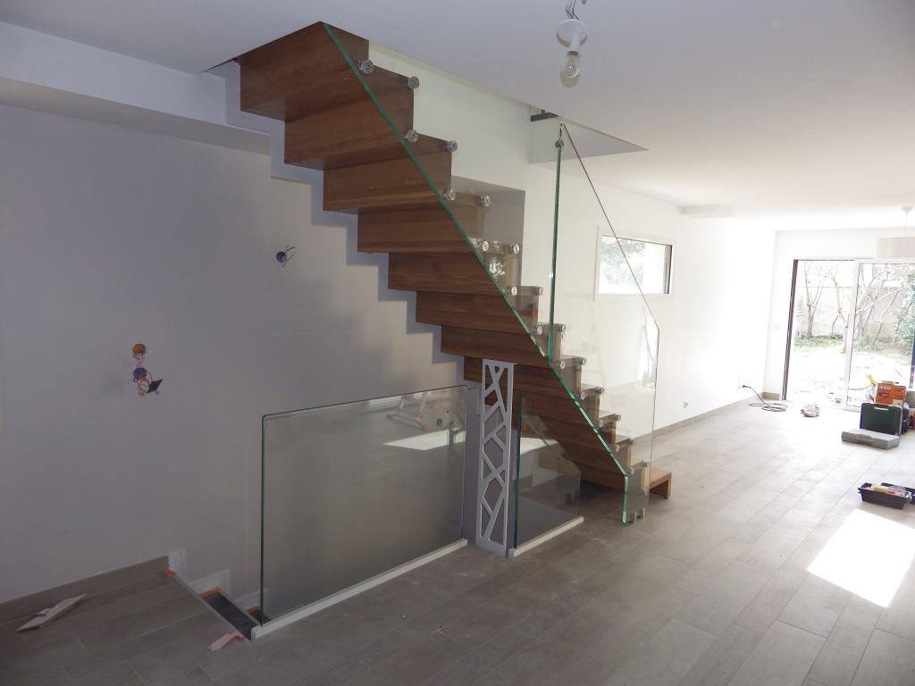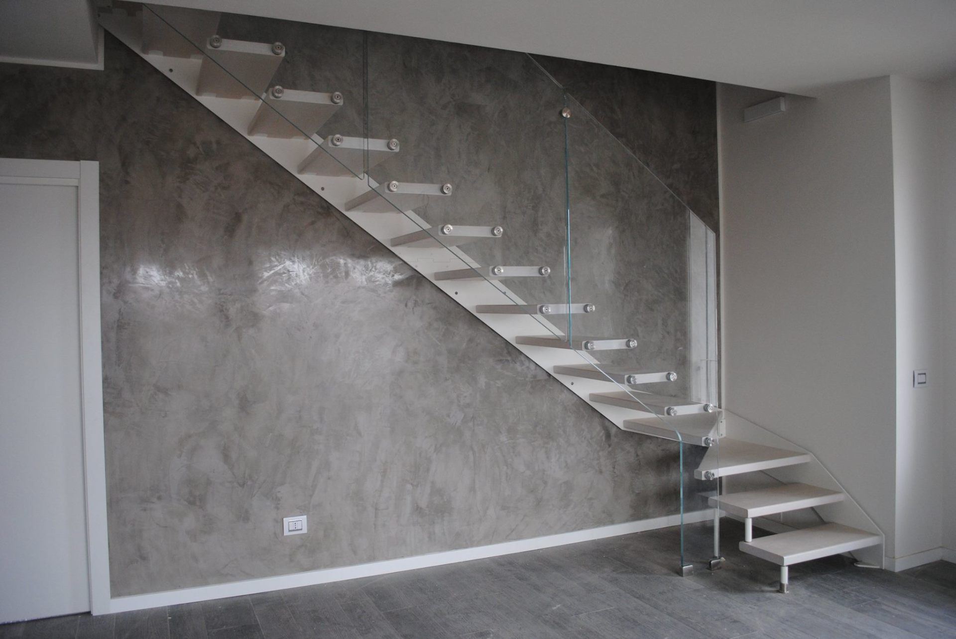 Scala in vetro extrachiaro 10 mm temperato con distanziali in acciaio cromo-lucido.