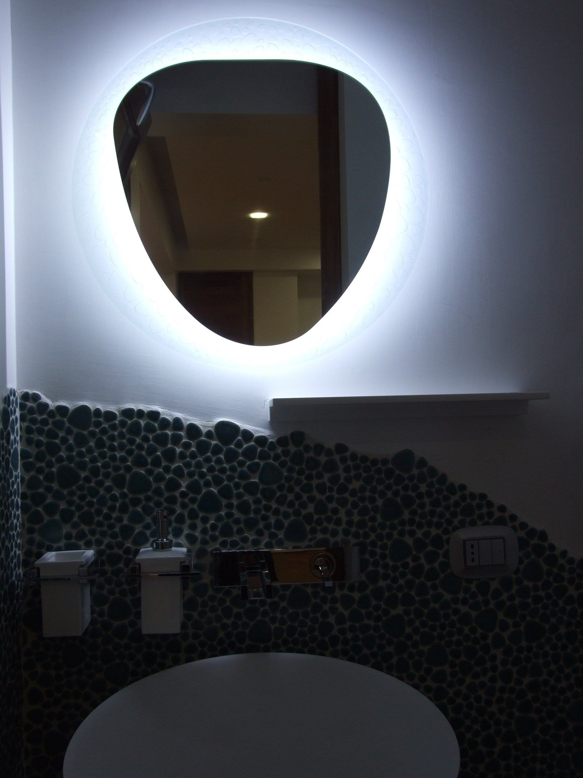 Specchio da 5 mm con faretti led montati presso il centro estetico Lopez. Photo credit Margherita Falocco