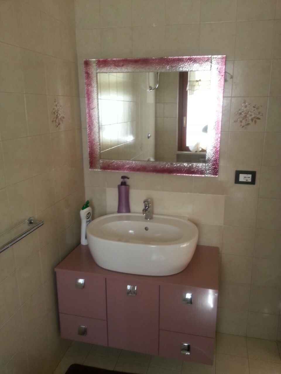 Specchio a nicchia, da 5 mm, con cornice perimetrale in vetro fuso.