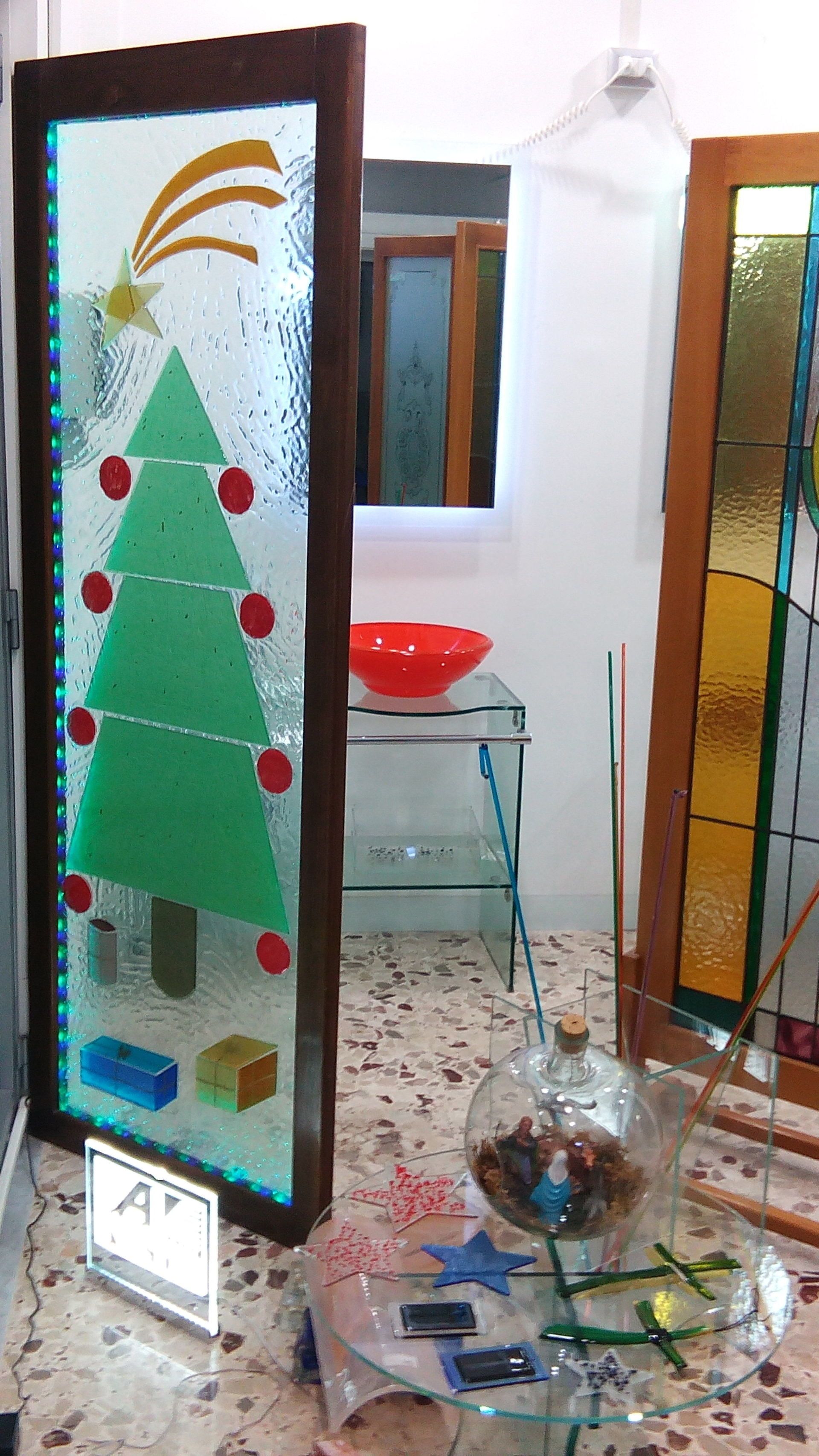 Vetrata in vetro fuso, realizzata nel nostro laboratorio in occasione delle festività natalizie.
