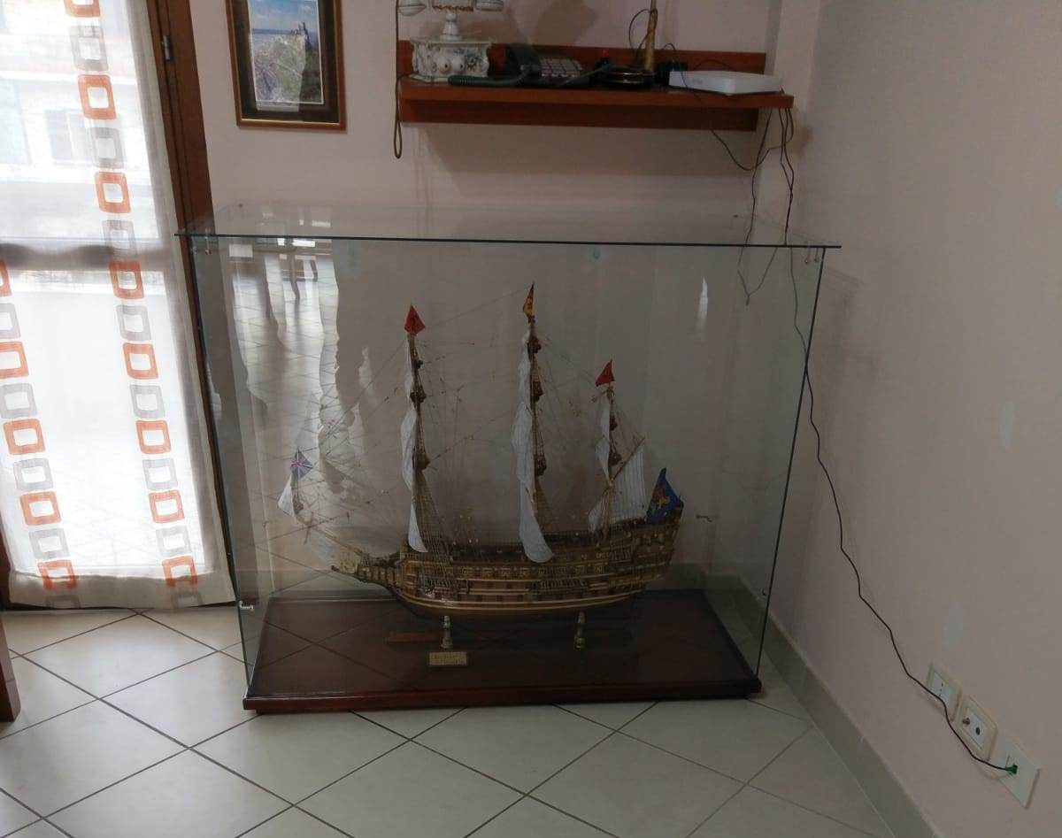 Teca per modellismo in vetro extrachiaro 6 mm, incollata con raggi UV.