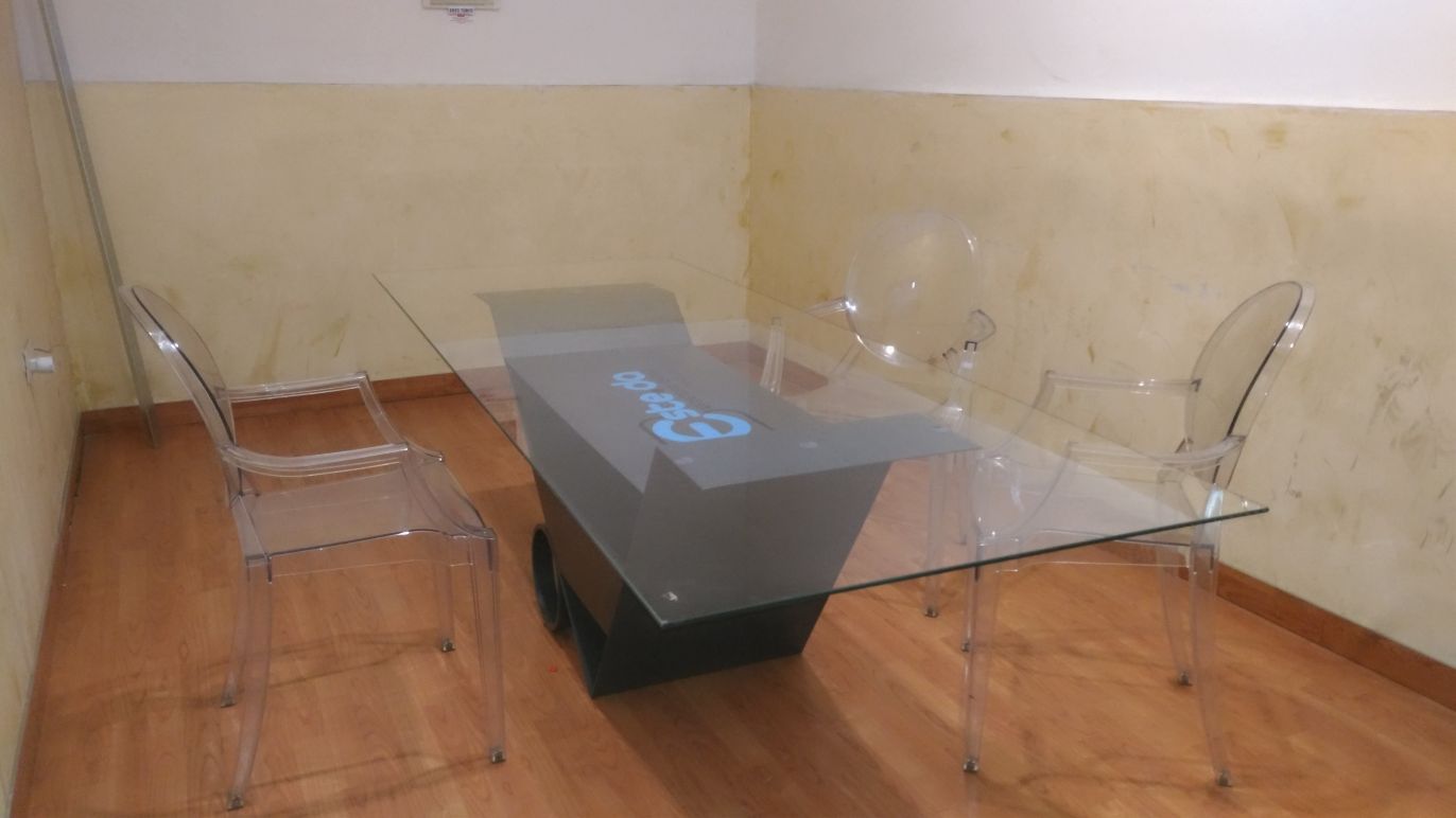 Tavolo da riunione in vetro extrachiaro 10 mm temperato realizzato per Esteda.